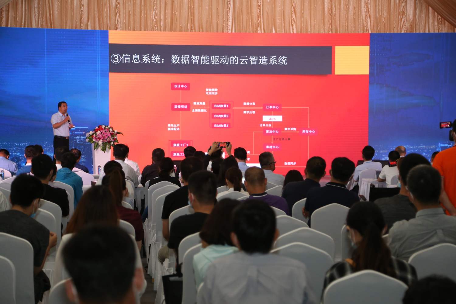 和能(neng)人居科技集團(tuan)居住(zhu)事業部(bu)總經(jing)理宋輝先生發表(biao)了以(yi)“裝配式(shi)(shi)裝修助力高標準住(zhu)宅(zhai)建(jian)設”為(wei)主題的演講,并向來(lai)賓分享(xiang)了全(quan)屋裝配式(shi)(shi)裝修智能(neng)制造體系和全(quan)產業鏈布局,以(yi)及關于(yu)智能(neng)智造、技術革新和產業融(rong)合心得(de)。